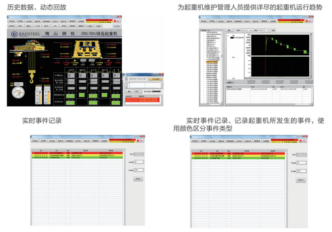 •- 通過起重機安全監(jiān)控管理系統(tǒng),運行管理人員可以通過系統(tǒng)對起重機運行中出現(xiàn)的故障進(jìn)行 查詢和處理;對設(shè)備及元器件進(jìn)行系統(tǒng)管理;指導(dǎo)定期對系統(tǒng)進(jìn)行維修和調(diào)試。系統(tǒng)具備以 下功能:實時狀態(tài)顯示、實時報警顯示、歷史記錄查詢、部件壽命監(jiān)測、事故診斷分析、數(shù) 據(jù)統(tǒng)計及權(quán)限設(shè)定管理等。